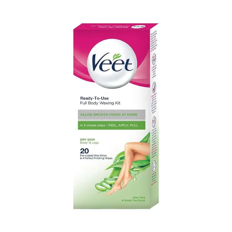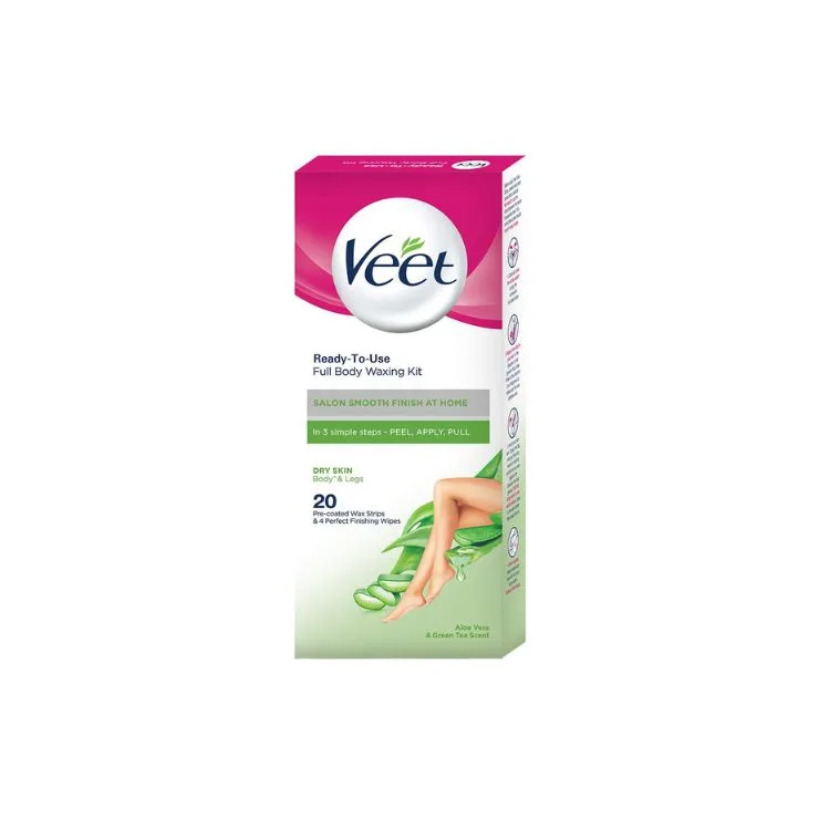 Veet Full Body Wax Strips 20 Pre Coated Strips Aloe Vera & Green Tea Scent