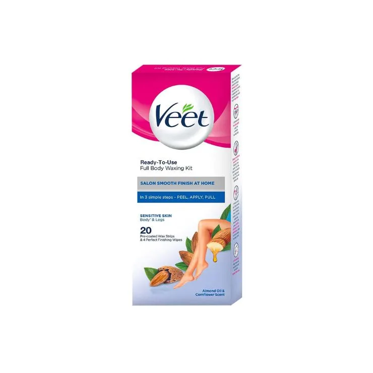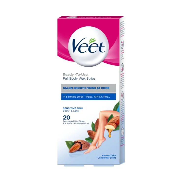 Veet Full Body Wax Strips 20 Pre Coated Strip Almond Oil & Cornflower Scent
